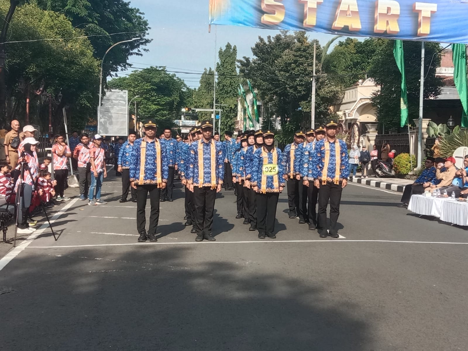 Lomba gerak jalan dalam rangka HUT KORPRI yang start di depan Pendopo Lokatantra Lamongan dan finish di GOR Lamongan tersebut diikuti oleh perwakilan KORPRI OPD-OPD di Kabupaten Lamongan.