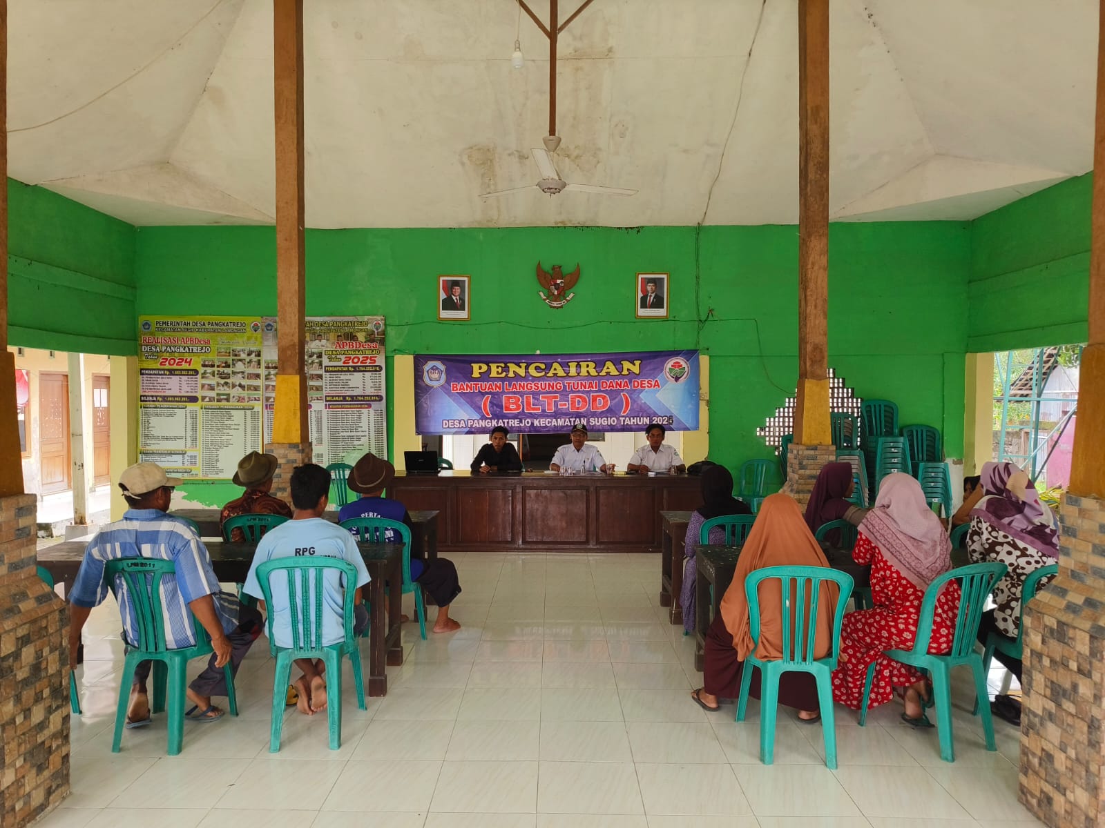 Pangkatrejo - Rabu 3 Desember 2025 pagi ini bertempat di Balai Desa Pangkatrejo Kecamatan Sugio Kabupaten Lamongan dilaksanakan penyaluran Bantuan Langsung Tunai Dana Desa (BLT-DD) untuk Tribulan IV (Oktober - Desember) Tahun Anggaran 2025.