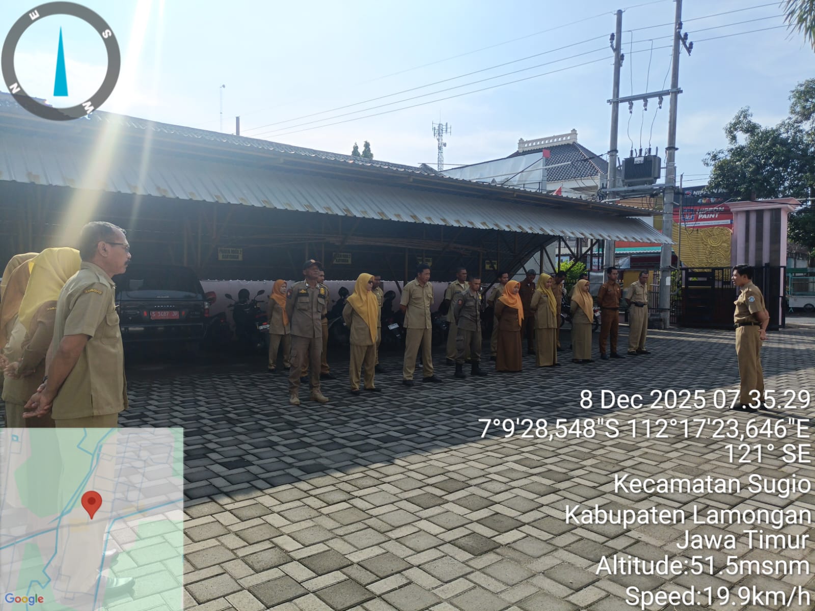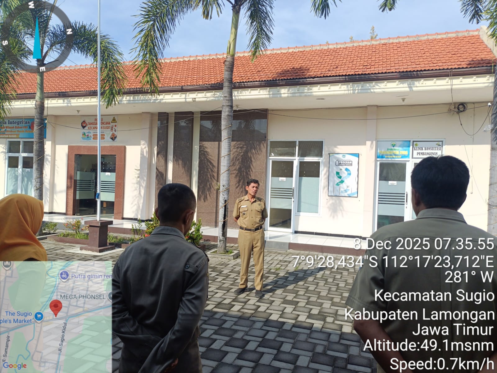 Senin, 8 Desember 2025 pagi ini Apel pagi dipimpin oleh Camat Sugio bpk. Bambang Purnomo, AP.,MM. Dalam arahannya beliau menyampaikan apresiasi dan terima kasih atas rekan-rekanita yang telah mengikuti berpartisipasi dalam pelaksanaan perlombaan HUT KORPRI ke-54 antara lain Lomba Master of Ceremony, Pembacaan UUD 1945, Panca Prasetya KORPRI dan Ikrar ASN Ber-AKHLAK serta Lomba Gerak Jalan. Selanjutnya beliau juga menyampaikan agar seluruhnya selalu menjaga kesehatan utamanya banyak kegiatan yang akan dilaksanakan dan perlu dituntaskan di penghujung tahun ini.