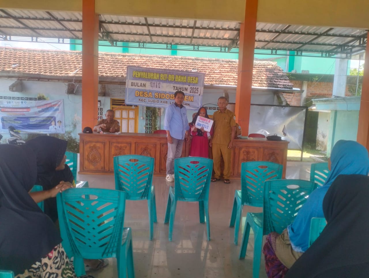 Sidobogem - Senin 8 Desember 2025 kemarin bertempat di Balai Desa Sidobogem Kecamatan Sugio dilaksanakan penyaluran Bantuan Langsung Tunai Dana Desa (BLT-DD) untuk Tribulan IV (Oktober - Desember) Tahun Anggaran 2025.