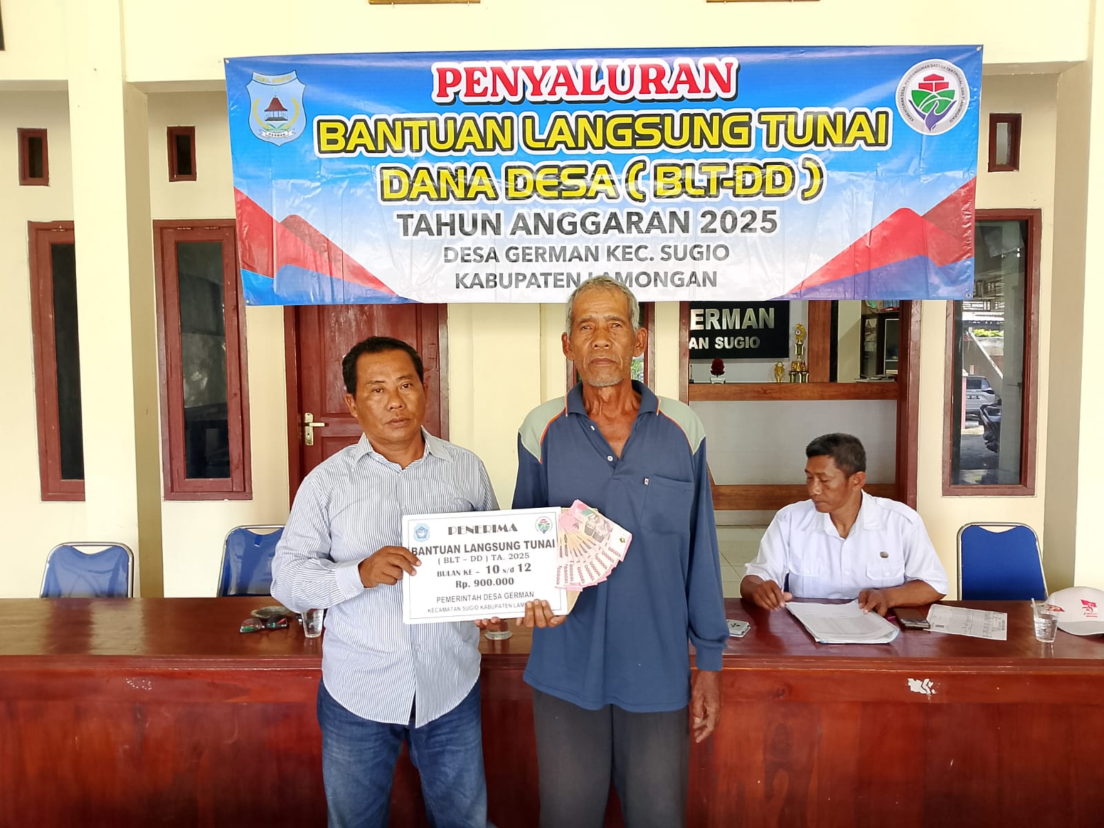 German - Rabu, 10 Desember 2025 kemarin bertempat di Balai Desa German Kecamatan Sugio Kabupaten Lamongan dilaksanakan penyaluran Bantuan Langsung Tunai Dana Desa (BLT-DD) untuk Tribulan IV (Oktober - Desember) Tahun Anggaran 2025.