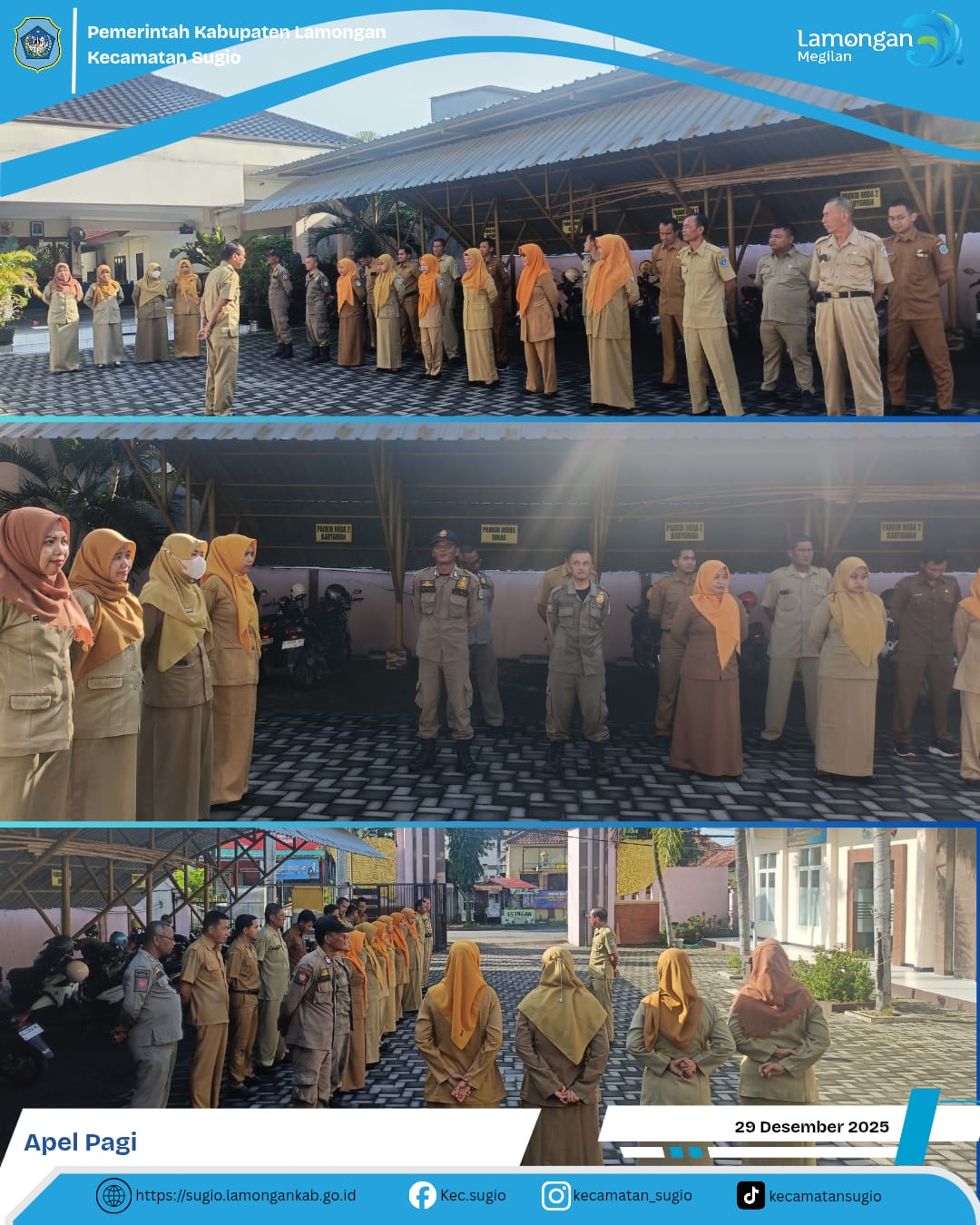 Sugio - Apel Senin Pagi agenda tanggal 29 Desember 2025 pagi ini berlangsung di halaman Kantor Kecamatan Sugio dipimpin oleh Sekretaris Kecamatan Sugio bpk. Susilo Wahyuono, SE.MM.