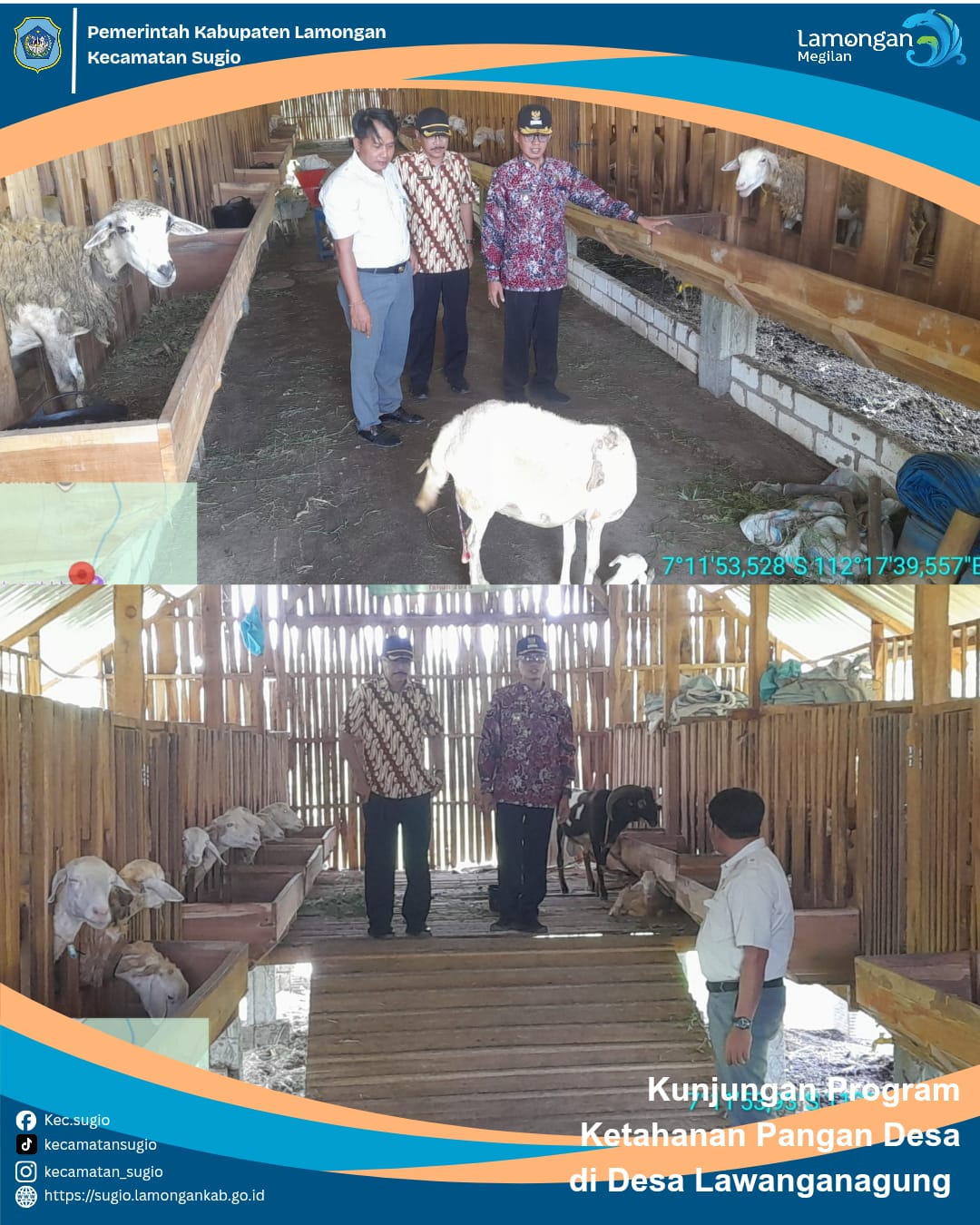 Kunjungan kali ini guna menilik progres program ketahanan pangan desa di Desa Lawanganagung. BUMDes Mekar Jaya yang pada tahun 2025 kemarin memiliki unit usaha baru di bidang ketahanan pangan yakni peternakan kambing. Saat ini jumlah ternak yang ada mencapai 20 ternak lebih.