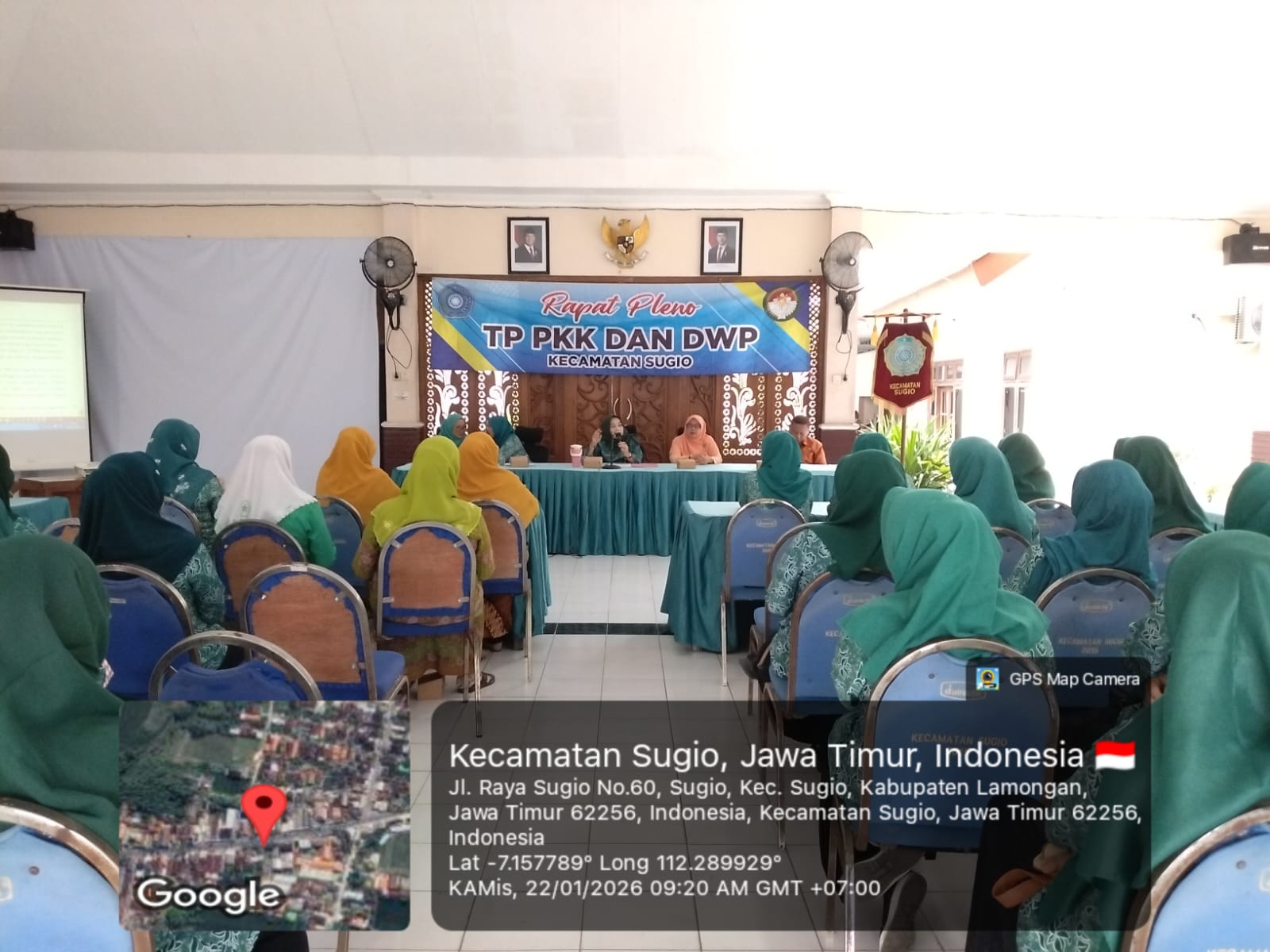 Sugio - Agenda Pleno rutin Pengurus PKK dan Dharma Wanita Persatuan Kecamatan Sugio untuk agenda bulan Januari 2026 dilaksanakan pagi tadi (22/01) di Pendopo Kecamatan Sugio.