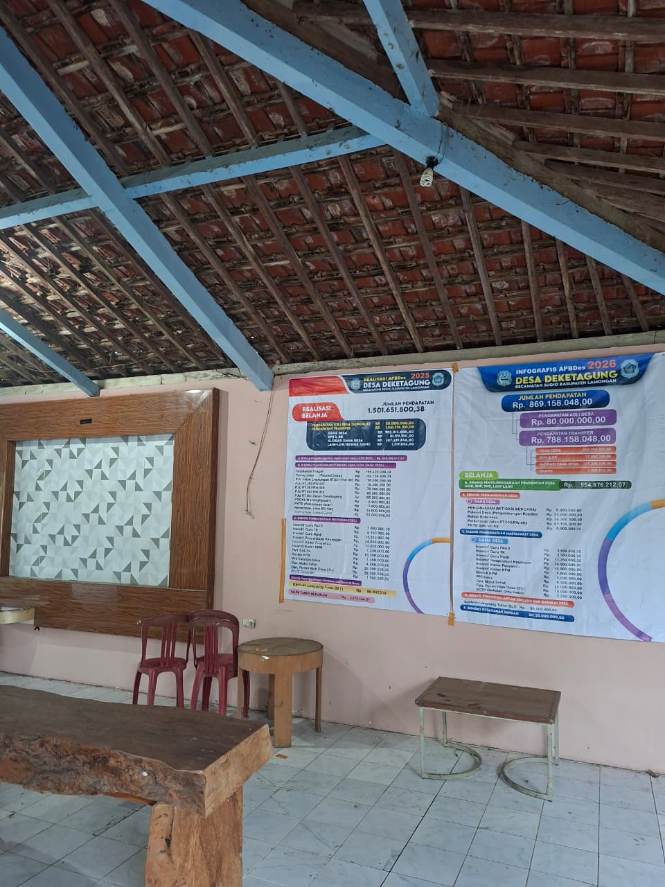 Seperti yang terlihat di Balai Desa Deketagung Kecamatan Sugio Kabupaten Lamongan. Terlihat banner pengumuman terpasang, baik itu Realisasi Anggaran Pendapatan dan Belanja tahun anggaran 2025 maupun Anggaran Pendapatan dan Belanja Desa tahun anggaran 2026.