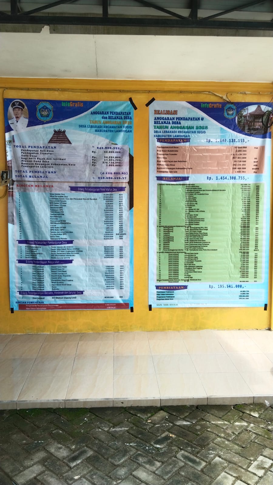Seperti yang terlihat di Balai Desa Lebakadi Kecamatan Sugio Kabupaten Lamongan. Terlihat banner pengumuman terpasang, baik itu Realisasi Anggaran Pendapatan dan Belanja tahun anggaran 2025 maupun Anggaran Pendapatan dan Belanja Desa tahun anggaran 2026.