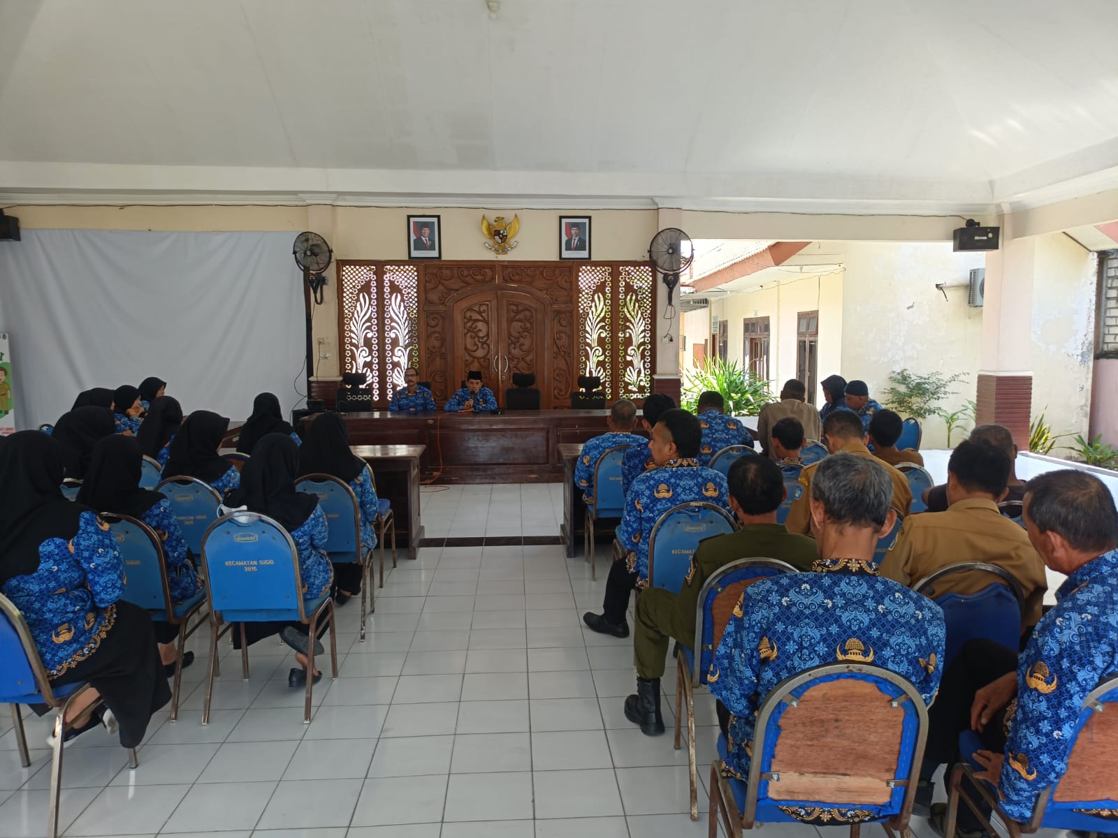Camat Sugio bapak Bambang Purnomo, AP. M.M. pimpin rapat staf.