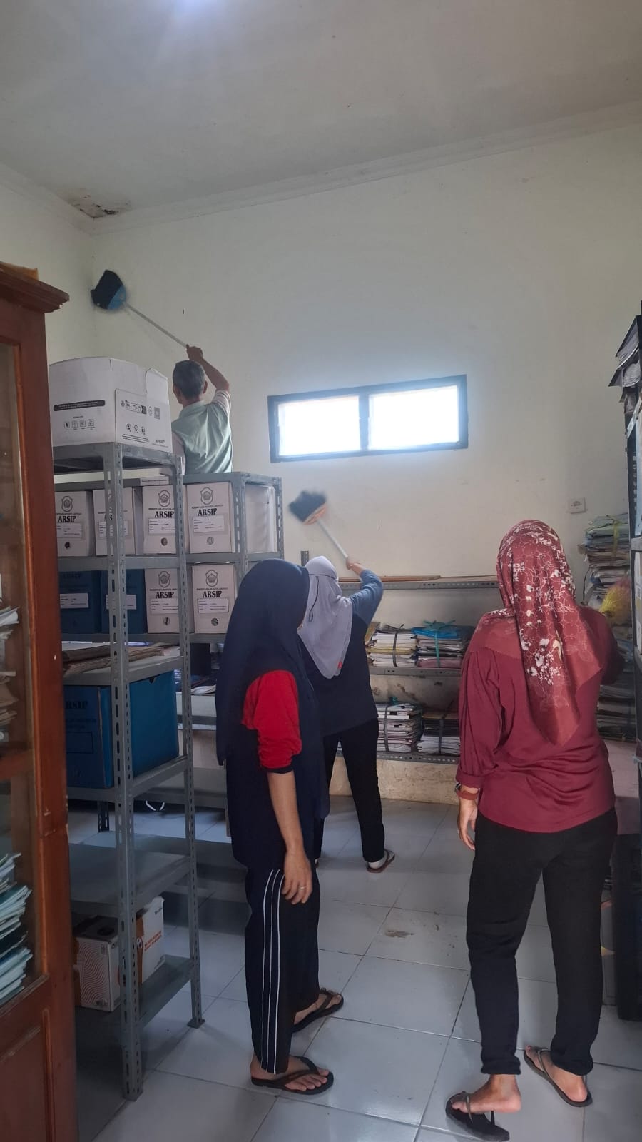 Pada hari Jumat tanggal 10 April 2026 kemarin kegiatan tersebut difokuskan di ruang kearsipan. Penataan ulang serta pembersihan dilakukan guna mewujudkaan ruang arsip yang bersih, indah, dan tertata rapi.