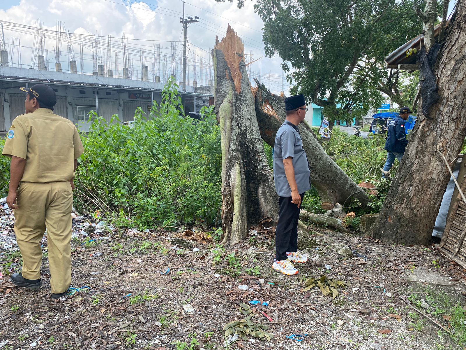 Karangsambigalih - Pagi ini (14/04) Kasi Trantib bapak Nur Rofiq, S.Kep. NS. bersama petugas dari Dinas Bina Marga, Cipta Karya dan Tata Ruang Kabupaten Lamongan mengevakuasi pohon tumbang. Pohon tumbang yang berada di bahu jalan ruas Bakalrejo - Gondanglor tersebut segera dievakuasi bersama warga sekitar.