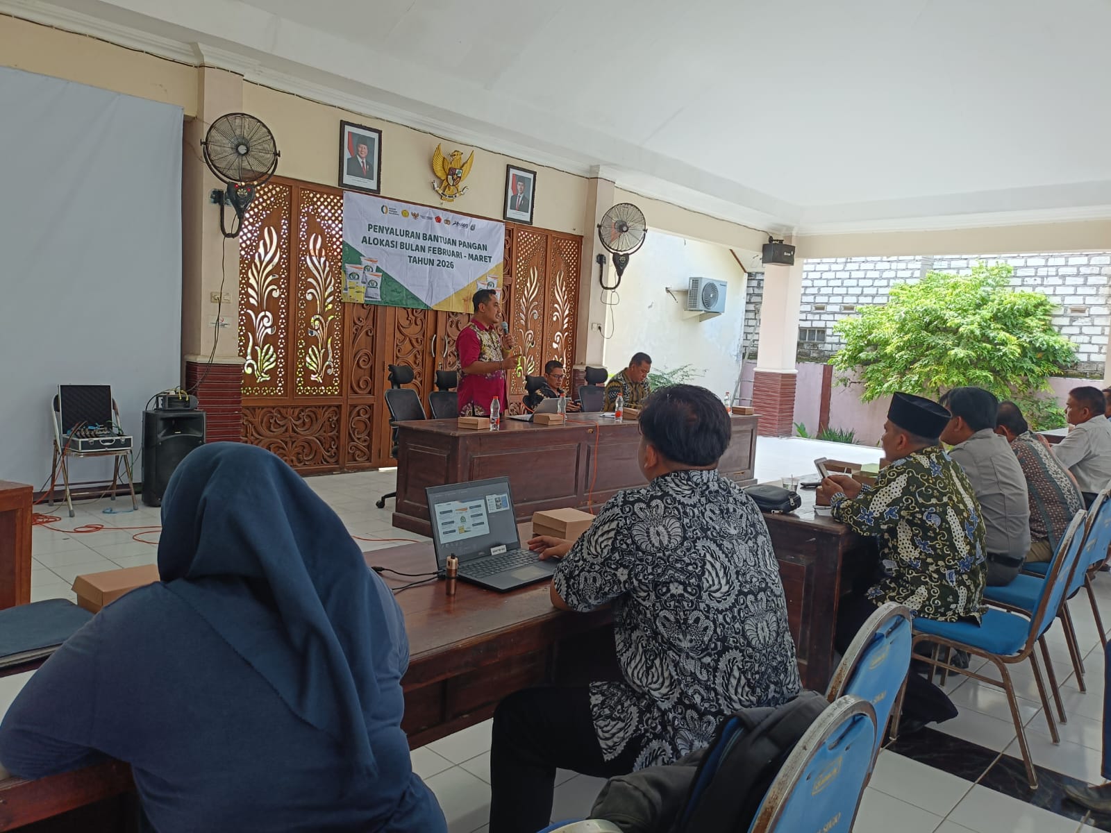 Sosialisasi Penyaluran Bantuan Pangan Beras Tahun 2026 di Pendopo Kecamatan Sugio resmi dibuka oleh Camat Sugio bapak Bambang Purnomo, A.P., M.M. (23/04).